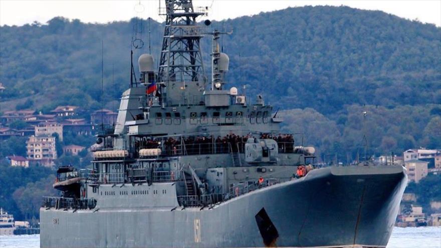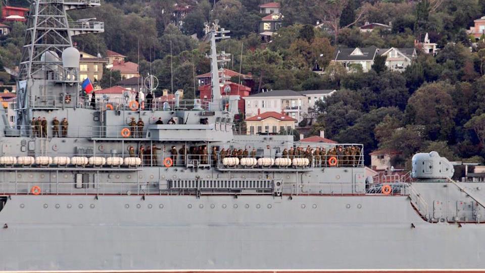 Un buque ruso, clase Ropucha, embarcó a un gran número de militares del estrecho del Bósforo —que separa a Asia de Europa—y se dirige hacia las costas sirias en el mar Mediterráneo.