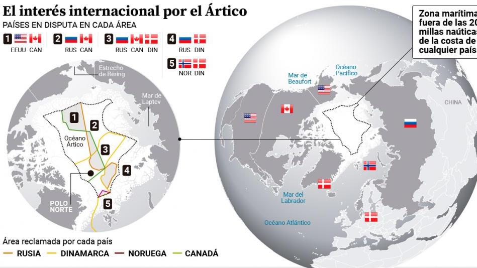 Esta zona también es crucial para Rusia porque su deshielo está abriendo rápidamente nuevas rutas marítimas desde el sureste asiático hasta Europa, utilizando una ruta mucho más corta a lo largo de la costa rusa.