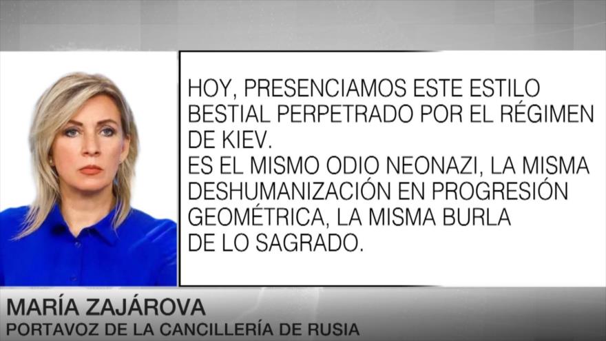 La portavoz de la Cancillería rusa, María Zajárova, instó a los presidentes y primeros ministros de los países occidentales a ver cómo se han gastado los miles de millones de sus contribuyentes para matar civiles y de qué manera han sido cómplices en la aniquilación de niños.