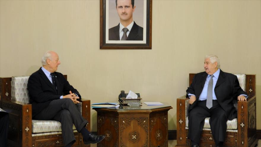 Durante un encuentro en Damasco, capital siria, con el enviado especial de la Organización de las Naciones Unidas (ONU) para Siria, Staffan de Mistura, el canciller sirio ha reafirmado que “el Gobierno (sirio) está comprometido con la continuación del diálogo entre sirios sin condiciones previas”, ha informado la agencia oficial siria de noticias SANA.