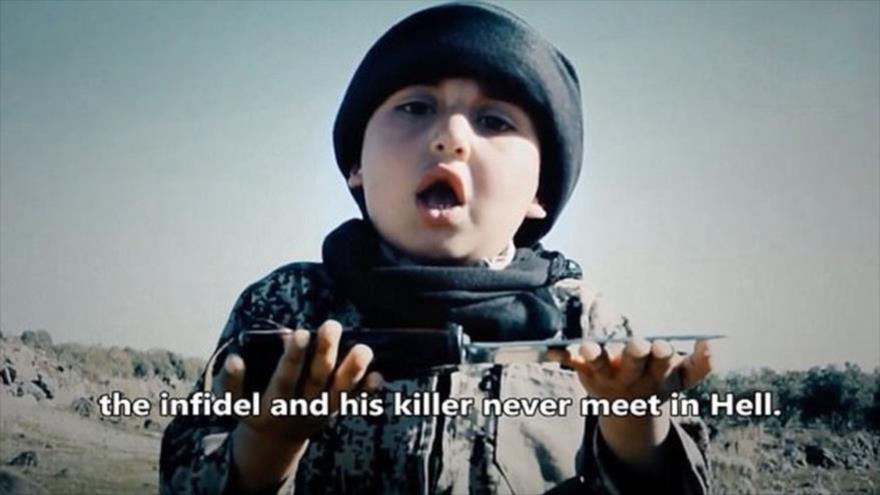En las imágenes se escucha cómo el menor le pide a los terroristas takfiríes que decapiten a los prisioneros: “El infiel y su asesino nunca se encontrarán en el infierno”, concluyó su solicitud.