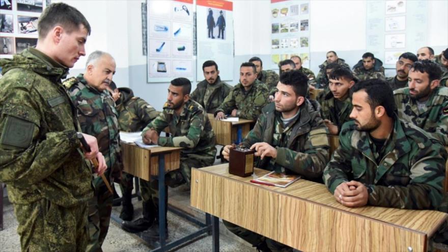 La cadena de televisión estatal Russia-24 ha difundido un vídeo en el que se ve a los militares rusos enseñar a los reservistas del Ejército sirio a utilizar ametralladoras, rifles y lanzacohetes en una base no identificada, ubicada a las afueras de Damasco, capital siria.