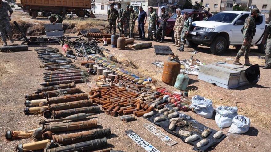 En medio de una escalada de enfrentamientos entre el Ejército sirio y los grupos extremistas en Guta Oriental, arrabal de Damasco, la capital siria, la Inteligencia militar siria ha incautado este miércoles un cargamento de toneladas de armamentos en las inmediaciones capitalinas.