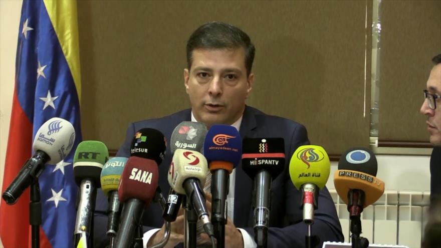La embajada de la República Bolivariana de Venezuela en Damasco (la capital de Siria) ha celebrado este martes una rueda de prensa en su sede. Con el título de “Bloqueo económico y financiero como arma de guerra contra Venezuela”. El embajador de Venezuela, José Gregorio Biomorgi, informó a HispanTV sobre el objetivo de este evento.