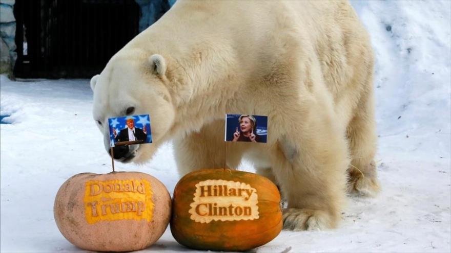 No obstante, el resultado en un zoológico en Rusia fue contrario. El lunes, el día previo al inicio de los comicios en EE.UU., los trabajadores del zoo Róyev Ruchéi, en la ciudad siberiana de Krasnoiarsk, ofrecieron a Félix, un oso polar, dos calabazas con retratos de los candidatos presidenciales. Sin pensarlo dos veces, el animal ha escogido la fotografía del candidato republicano Donald Trump.
