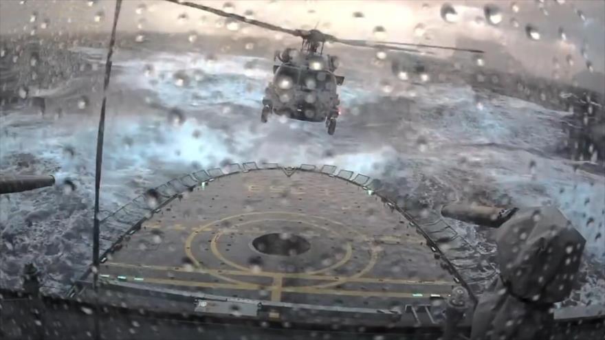 Las imágenes evidencian los diversos intentos de los pilotos para hacer descender el helicóptero y posarlo sobre la pequeña plataforma del buque mientras el viento, la lluvia y los bruscos movimientos de la embarcación dificultan la tarea.