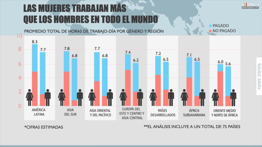 Sin embargo, resalta que este tipo de trabajo también se considera una actividad que exige tiempo, por lo cual, concluye que en general las mujeres trabajan más en todo el mundo.
