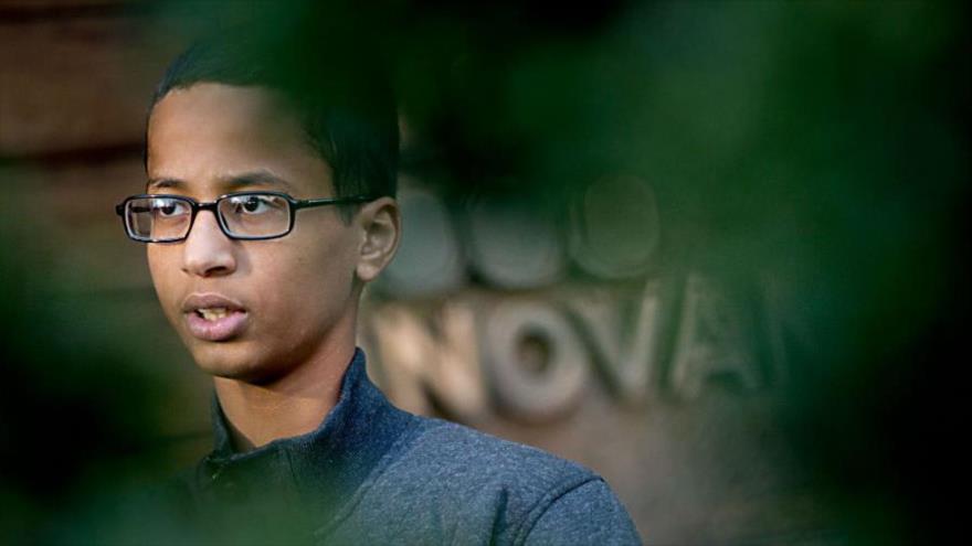 Mohamed, de 14 años y apasionado por la ingeniería, fue sacado de clase en el instituto MacArthur de la localidad texana, interrogado por agentes de policía y esposado para dirigirlo a un centro de detención al confundir su profesora el reloj que había fabricado el joven musulmán con una bomba en el instituto MacArthur de la localidad texana.