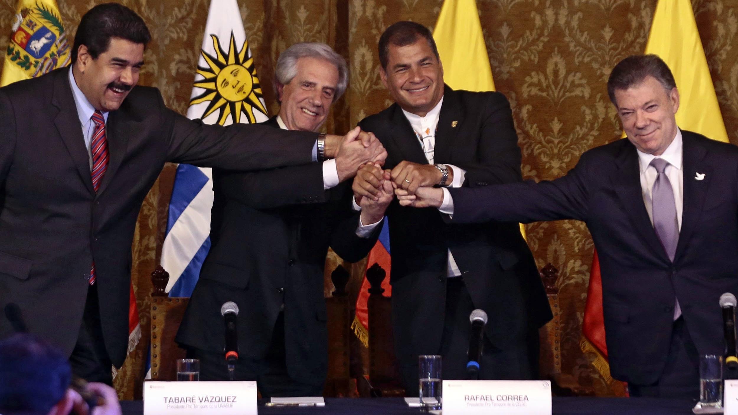 En la misma jornada del martes, el dignatario del país bolivariano agradeció a los mandatarios de Ecuador, Rafael Correa, y de Uruguay, Tabaré Vázquez, su cooperación en la celebración del encuentro entre Caracas y Bogotá en Quito, capital de Ecuador.