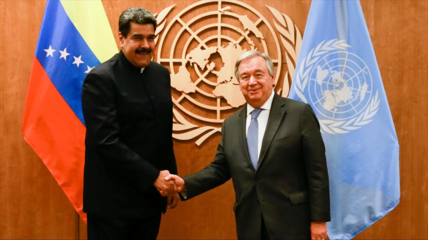El presidente de Venezuela, Nicolás Maduro, se reunió el jueves con el secretario general de las Naciones Unidas, Antonio Guterres en la sede de la Organización de Naciones Unidas (ONU) en Nueva York (EE.UU.) y tras la cita, destacó que en la reunión se trataron varios temas que le permitió “llevar la verdad de Venezuela”, en declaraciones a la prensa.