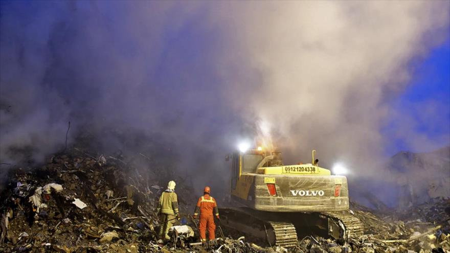 En general, once bomberos han perdido la vida como consecuencia del colapso el jueves pasado del famoso edificio comercial Plasco de 17 plantas en la capitalina ciudad de Teherán tras un incendio. Una de las víctimas fue un bombero que murió el viernes por sus heridas en el hospital, el resto han sido sacados de los escombros.