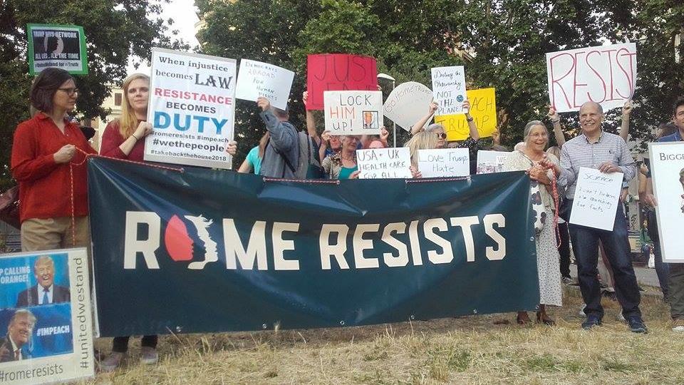 Mientras tanto, un grupo de personas tomó el martes las calles en Piazza Boloña, cerca de la embajada de los EE.UU., donde Trump se aloja durante la visita.