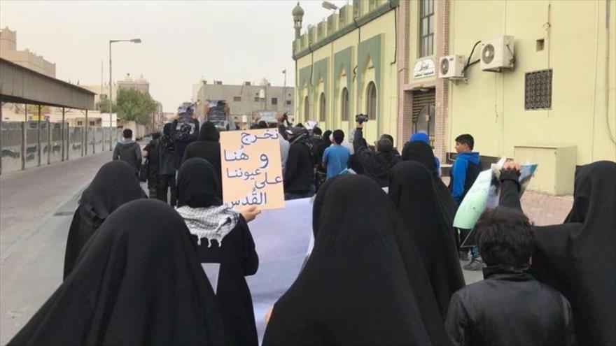 Durante varias protestas realizadas este viernes, los bahreiníes han gritado lemas contra EE.UU. y han pedido que el presidente estadounidense revierta su reciente decisión de reconocer a la ocupada ciudad de Al-Quds (Jerusalén) como la “capital israelí”.