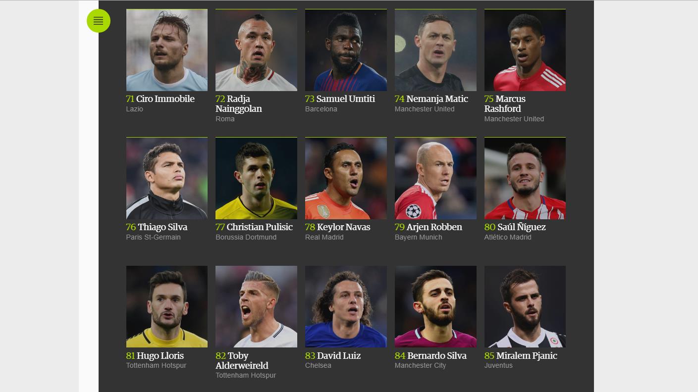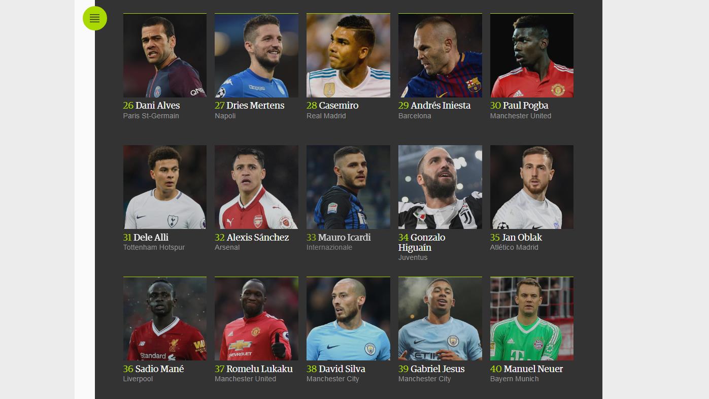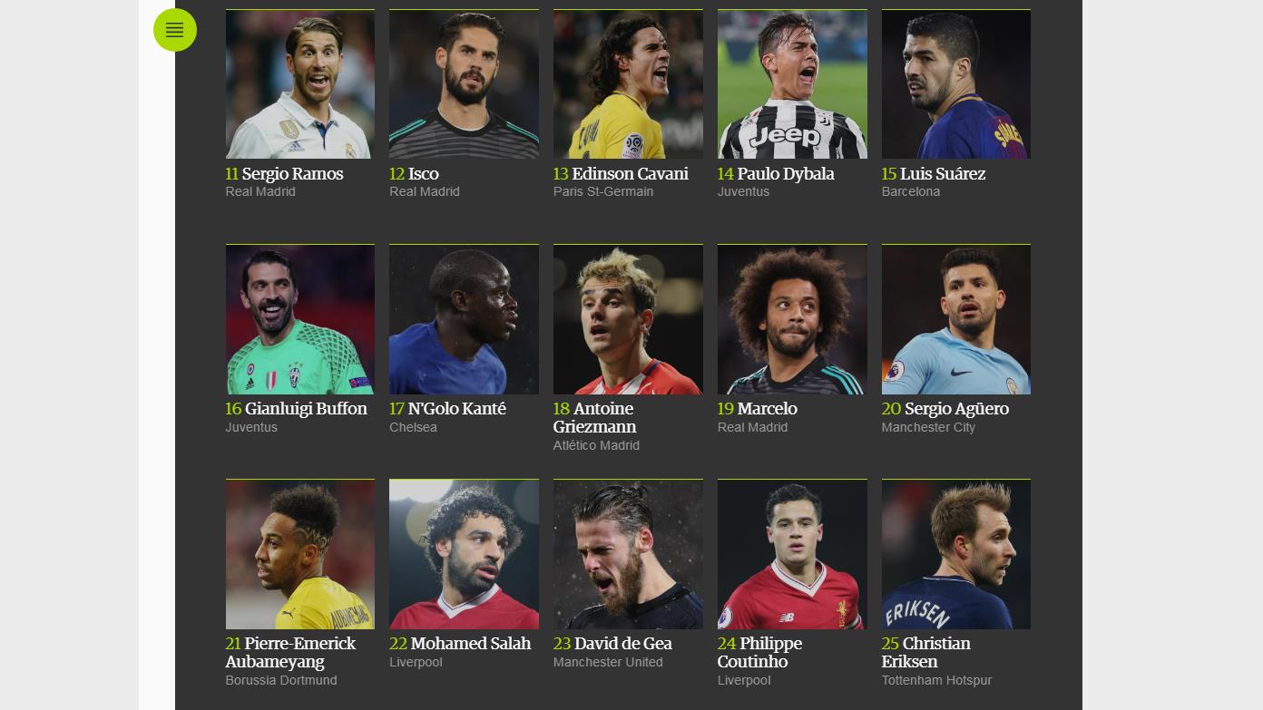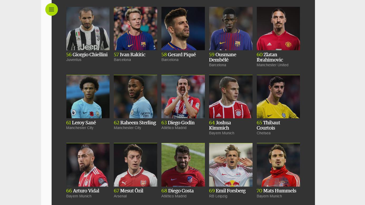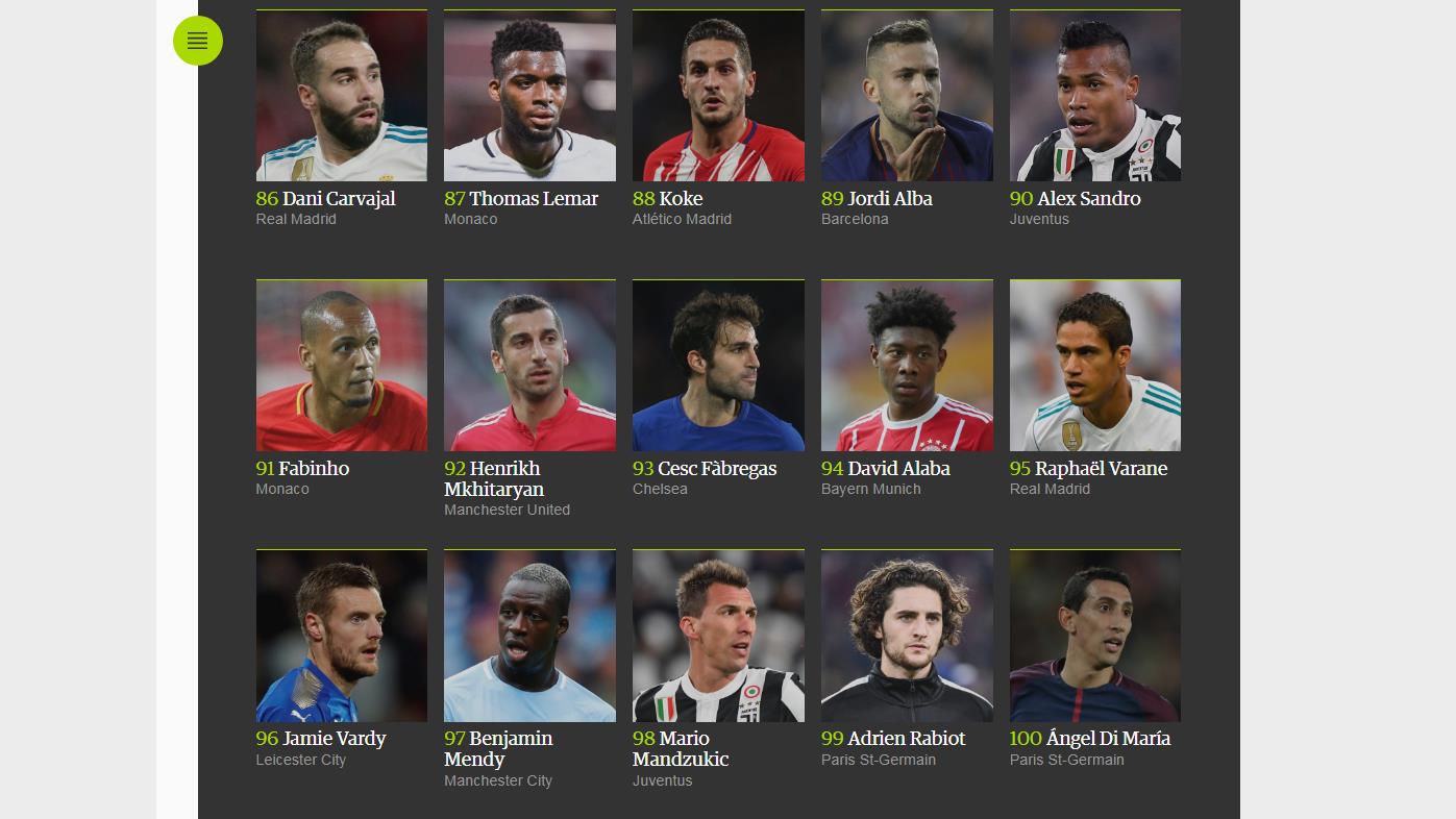 En esta clasificación, definida por 169 expertos de 63 países, el astro argentino Lionel Messi ha sido elegido como el mejor de todos, seguido por el portugués Cristiano Ronaldo, a pesar de que este último haya ganado este año el Balón de Oro, entregado por la revista France Football, y el premio “The Best”, de la FIFA.