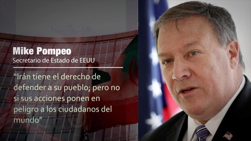 Aparentemente, el pacto nuclear de 2015 entre Irán y el Grupo 5+1 (EE.UU., el Reino Unido, Francia, Rusia y China, más Alemania) frena lo que Pompeo describe como comportamiento “maléfico” de Irán, lo que contradice declaraciones suyas ante el comité de Relaciones Exteriores del Senado de Estados Unidos como director de la Agencia Central de Inteligencia de EE.UU. (CIA, por sus siglas en inglés), admitiendo que Irán no estaba buscando la bomba atómica.