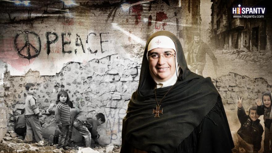 Agnes Mariam de la Cruz, madre superiora del Monasterio de San Jacobo el Mutilado en Qara, Siria, junto con la ganadora del premio Nobel de la Paz, Mairead Maguire, viajan a Teherán para unirse a la Caravana de Peregrinaje por la Paz en Siria.